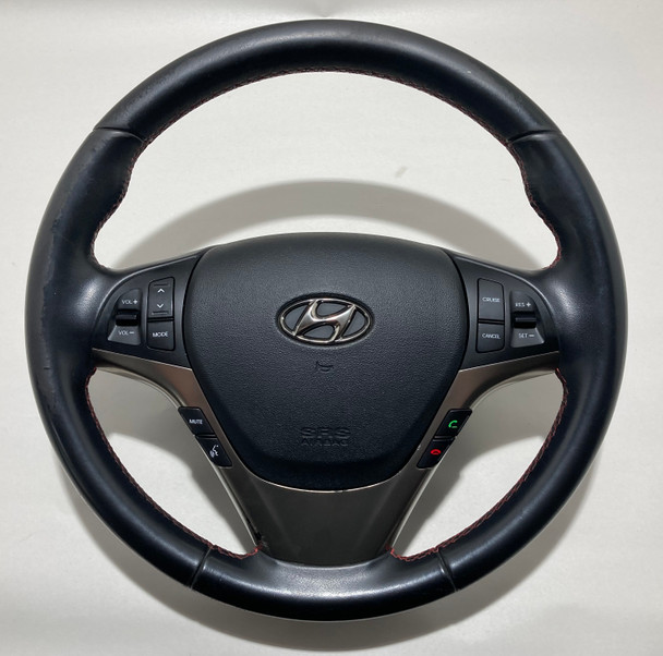 2013-2016 Hyundai Genesis Coupe Black Leather Steering Wheel w/ Air Bag Red Stitching / Manual / HG030